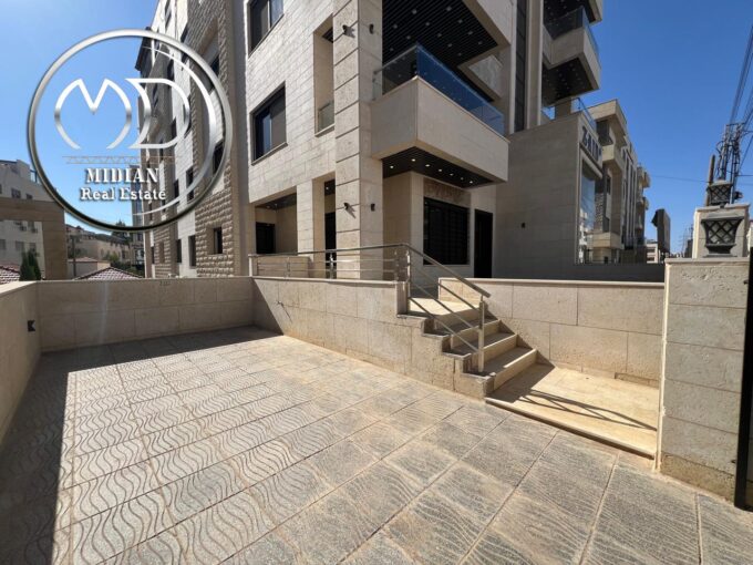 شقة ارضية فارغة للايجار جبل عمان مساحة 240م 4 نوم مع ترس و حديقة 70م تشطيبات سوبر ديلوكس بسعر مميز