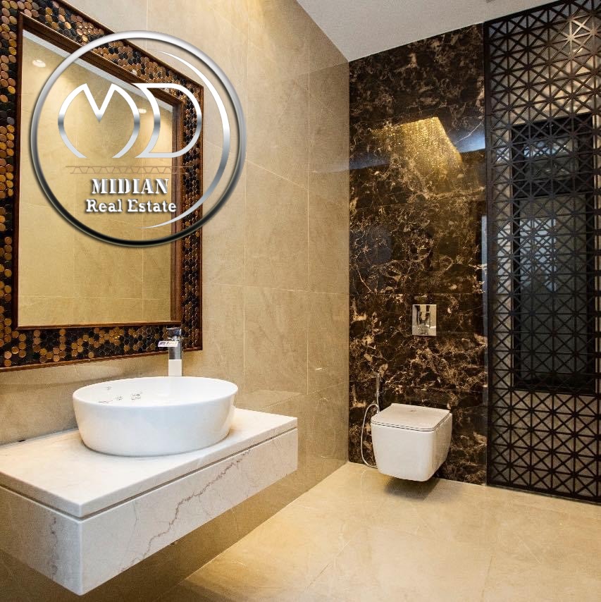 حمامات معلقة شور بوكس – أرضيات بورسلان و سيراميك باركيه – أبواب أمان – تشطيبات و ديكورات فاخرة جداً .