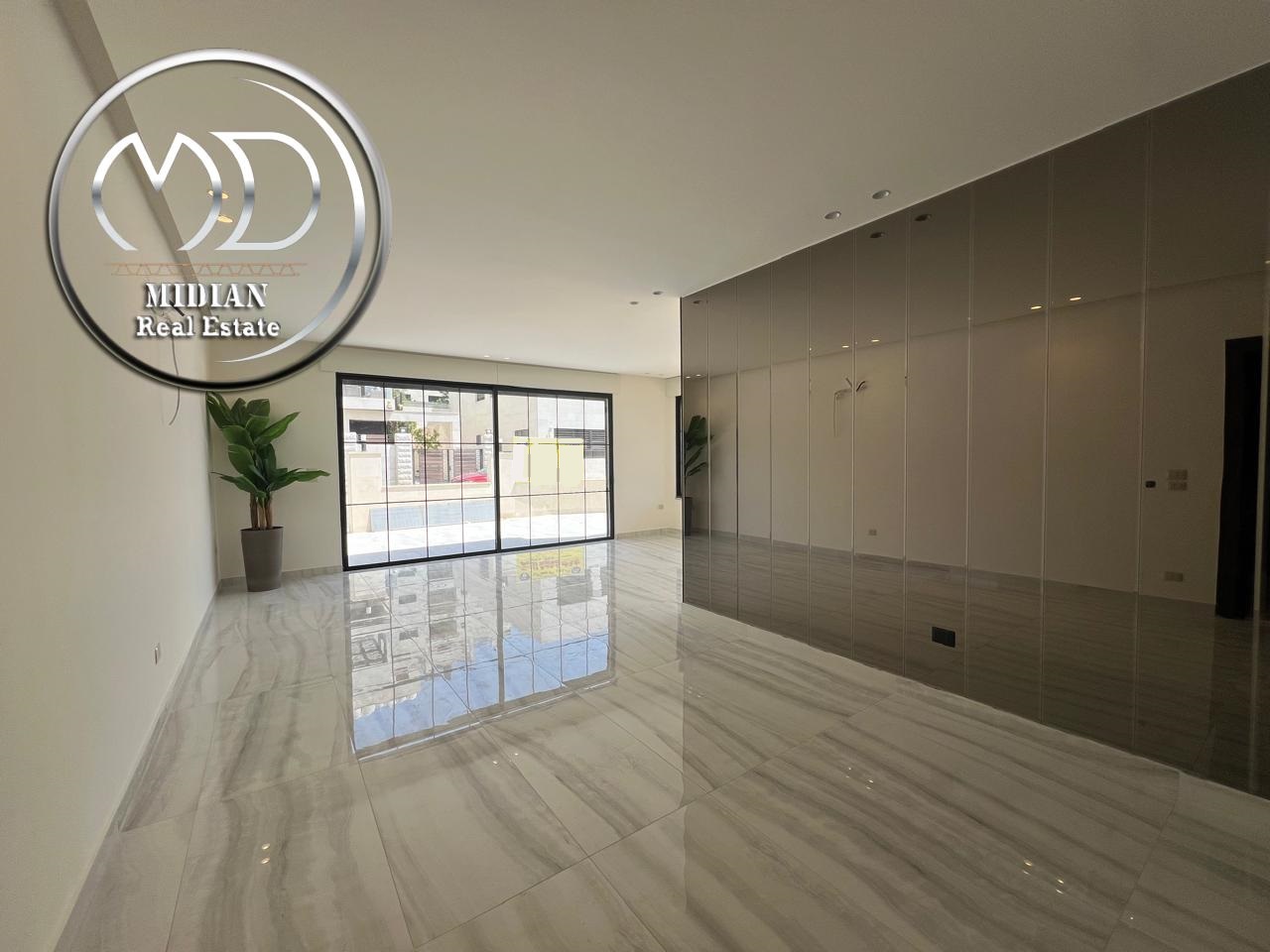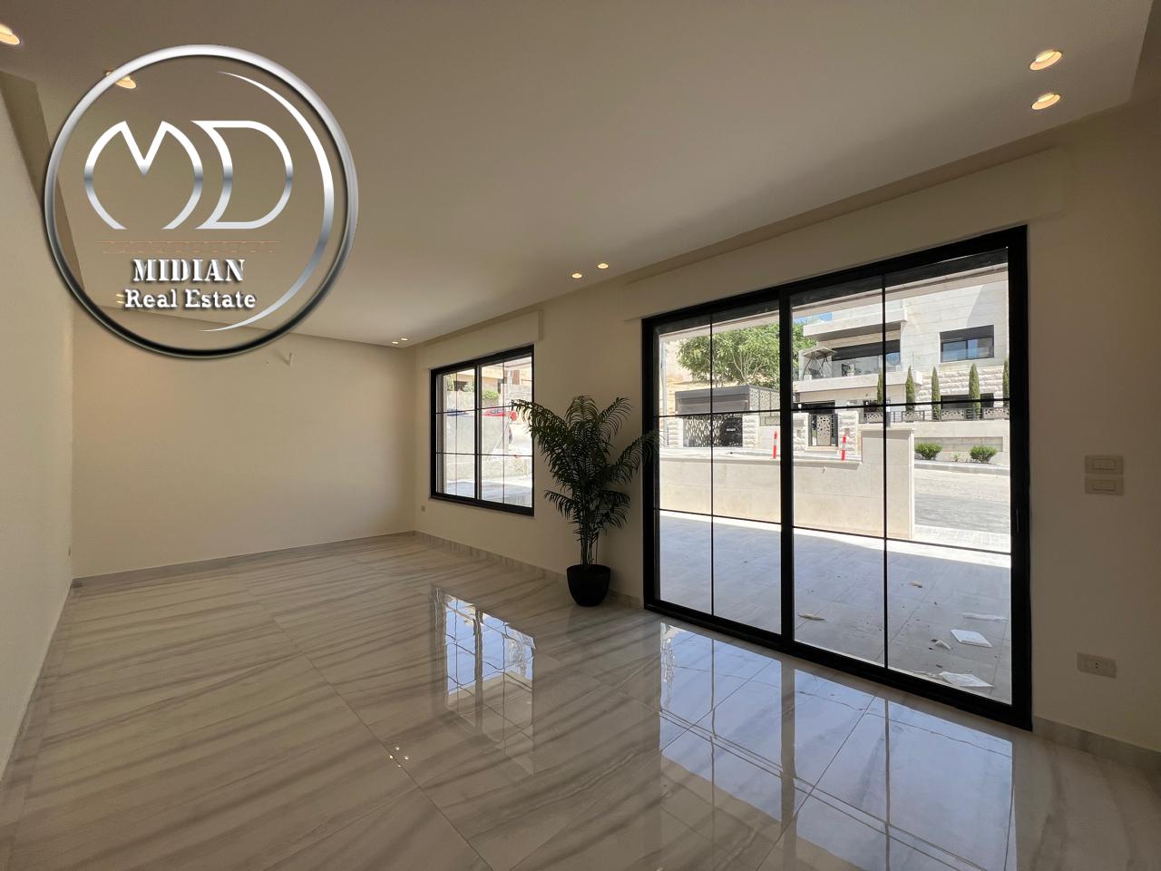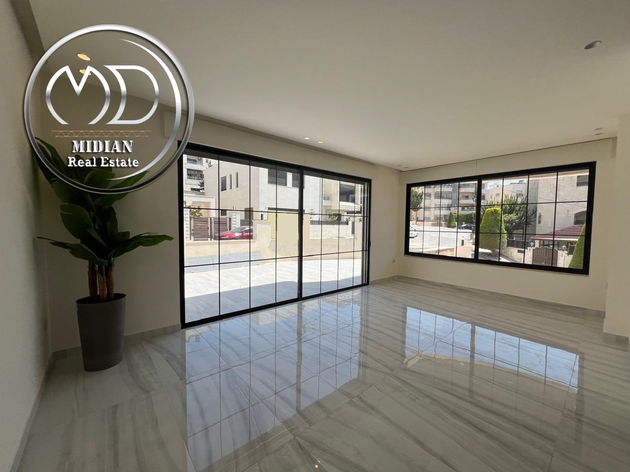 شقة ارضية جديدة للبيع في خلدا مساحة 205م مع ترس 60م تشطيبات و ديكورات فاخرة جداً اطلالة جميلة