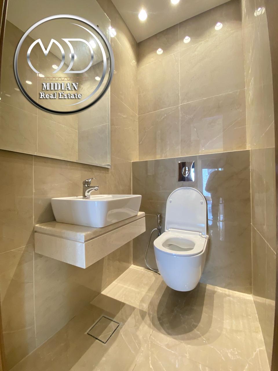 اباجورات كهرباء – حمامات معلقة شور بوكس – ارضيات بورسلان و سيراميك باركيه – أنارة مخفية – أبواب أمان .