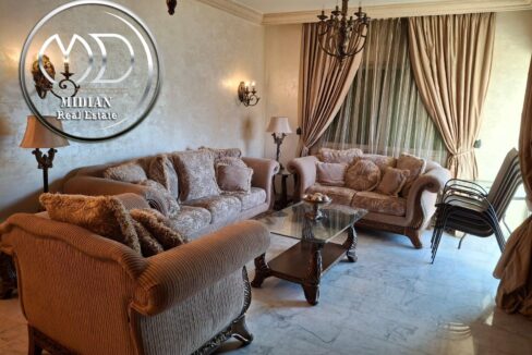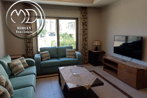 شقة ارضية مفروشة للايجار ام السماق مساحة 170م مع مسبح وترس 150م سوبر ديلوكس